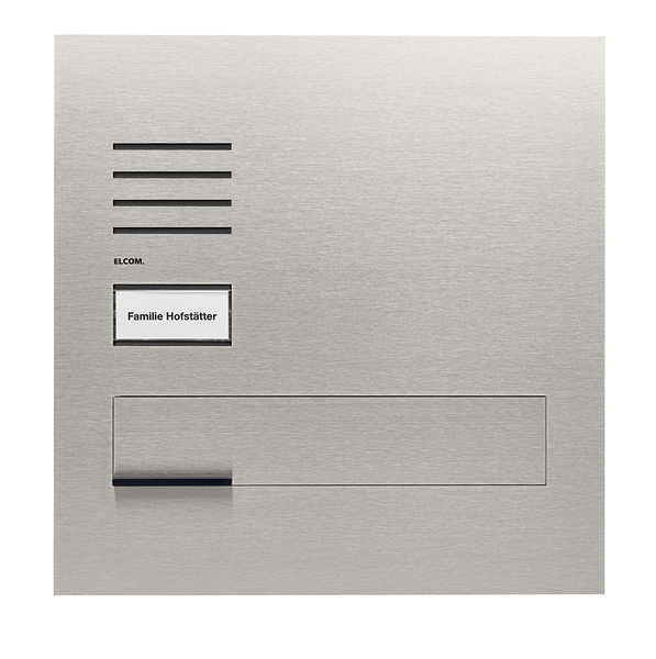 Die designprämierten Außenstationen ELCOM.ONE bestechen durch dezent-edles Design. Dazu tragen zum einen Frontplatten aus gebürstetem Edelstahl bei, die nahezu kratzresistent und rostfrei sind. Zum anderen kommen sie ohne sichtbare Verschraubungen aus, was sie so gut wie vandalismussicher macht. Der Clou: Entscheiden Sie sich im ersten Schritt für eine Audioanlage, ist eine spätere Umrüstung auf Videoversion durch den einfachen Tausch der Frontplatte möglich.