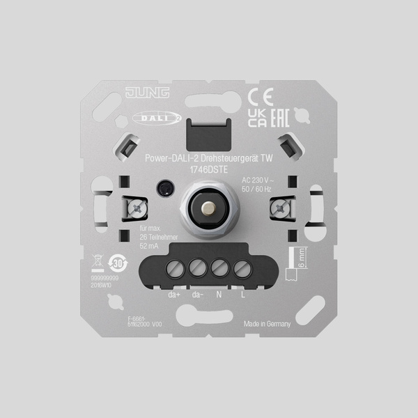 Das DALI-2 Drehsteuergerät TW Multimaster mit integrierter Bus-Spannungsversorgung und die Variante für externe Spannungsversorgung ermöglichen eine dezentrale Lichtsteuerung in DALI-Lichtsystemen. Die Drehsteuergeräte unterstützen den gemeinsamen Zugriff mehrerer als Master eingesetzter Steuergeräte auf eine Beleuchtungsanlage. Beide Modelle sind mit Abdeckungen der JUNG Serien A, AS, CD und LS kombinierbar. Bestehende Installationen lassen sich mit ihnen daher gestalterisch einheitlich ergänzen.
