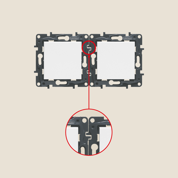 - Ausführung: Kombinationsgerät 1 bis 5-fach, Mosaic Adapter, IP44-Funktionen