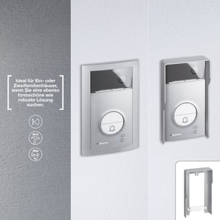 • Je nach gewähltem Set und Türstation beträgt die Schutzart IP54 und die Schlagfestigkeit IK10